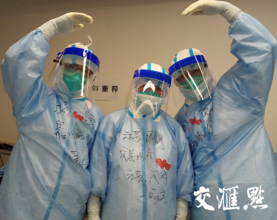 对于今天病区“清零”,医疗队员们也有诸多激动和不舍。最后一次进入病区,江苏医疗队的5位医生、14位护理人员都不约而同地在防护服上写上了“完美收官”四个字。将患者全部转运结束后,医疗队员们又来到病区“爱是一家人,共守一座城”的纪念墙前合影留念。大家纷纷表示“这是我们战斗过的地方,也是我们铭记一生的地方”。