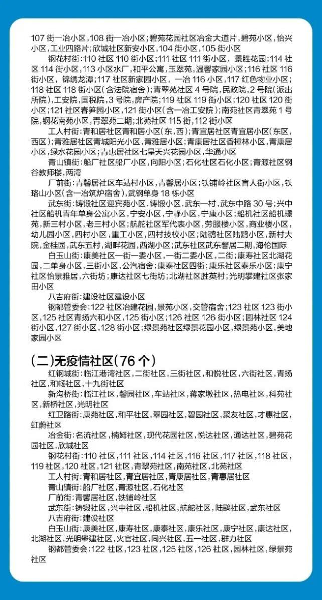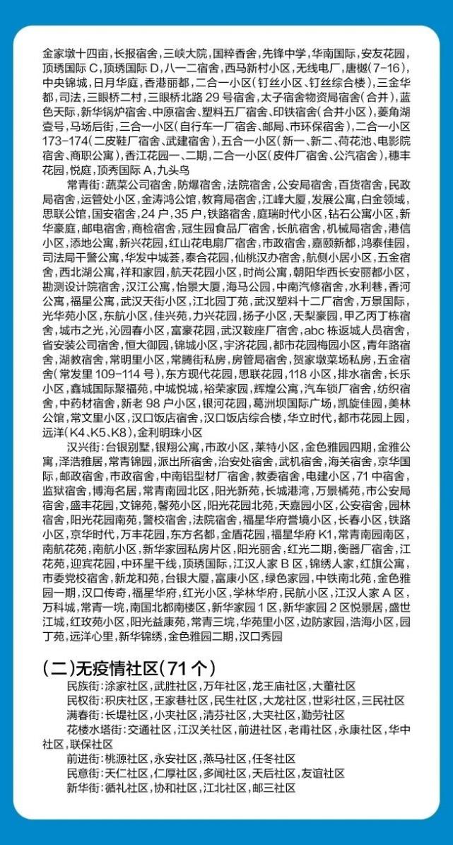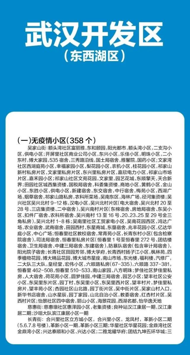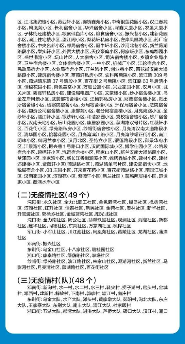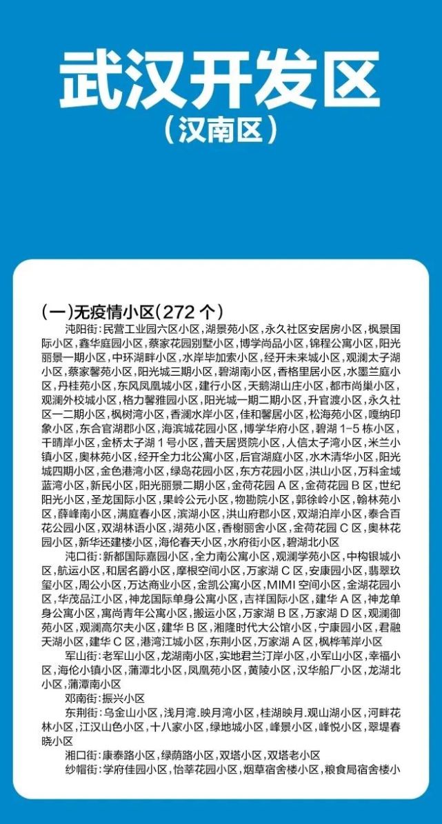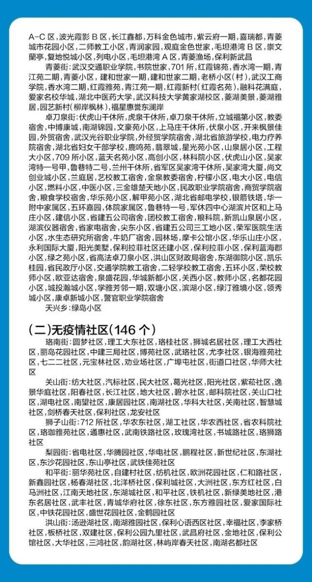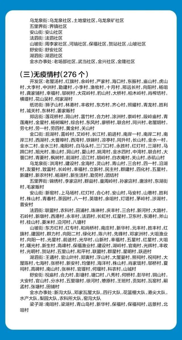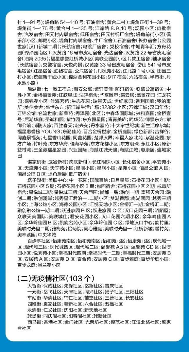 3月26日,武汉市新冠肺炎疫情防控指挥部社区疫情防控组公示武汉市第八批无疫情小区、社区、村(大队)名单。