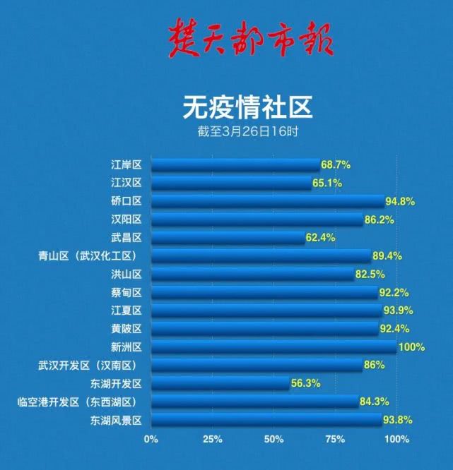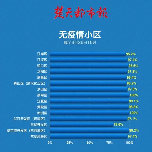 截至3月26日16时,全市无疫情小区累计数量6893个,占比97.1%;无疫情社区累计数量1136个,占比80.8%;无疫情村(大队)累计数量1932个,占比99.4%。
