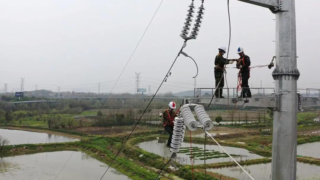湖北武汉黄金口220千伏变电站110千伏配套工程也于24日开始施工。早上6点,在现场设立的临时指挥部里,施工人员要经过一道“门”——进行体温测量和消毒。在一系列工前安全措施后,施工人员分别登上汉蔡高速匝道旁5基24米高的输电铁塔,有条不紊地进行验电、挂接地线、解除跳线、放置滑车,最后拆除1560米长导线。