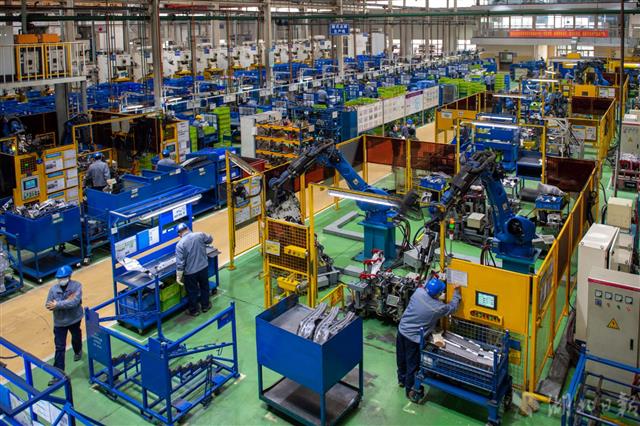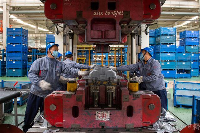 3月28日,武汉长华长源汽车零部件有限公司生产车间,工作人员正在忙碌。