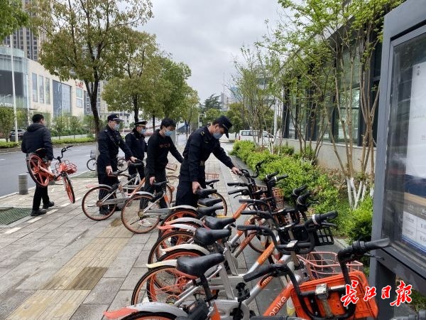 当天上午,在孟家铺地铁站搬运共享单车的还有城管队员。汉阳区城管执法大队相关负责人说,此次恢复运营的6条地铁线中,3、4、6号线都与汉阳有关,由于公共交通还未全面开放,预估共享单车的利用率会大幅提升,成为复工人员上班“最后一公里”的主要交通工具。“我们提前和单车企业对接,投放量要根据实际需求适时调整,投放站点要具体覆盖到交通枢纽、商圈和复工企业所在区域。”该区城管执法大队负责人说,他们将规范有序停放,依据相关消毒安全细则指导,严格车辆消毒处理,消除安全隐患。