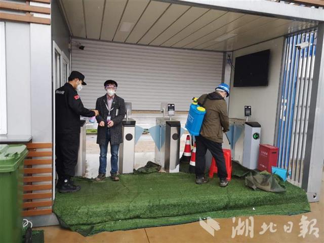 3月16日开始,管理人员返岗进驻现场,对施工现场办公区、施工区、宿舍区全面消杀;在施工现场及住宿区均设立了隔离观察室。