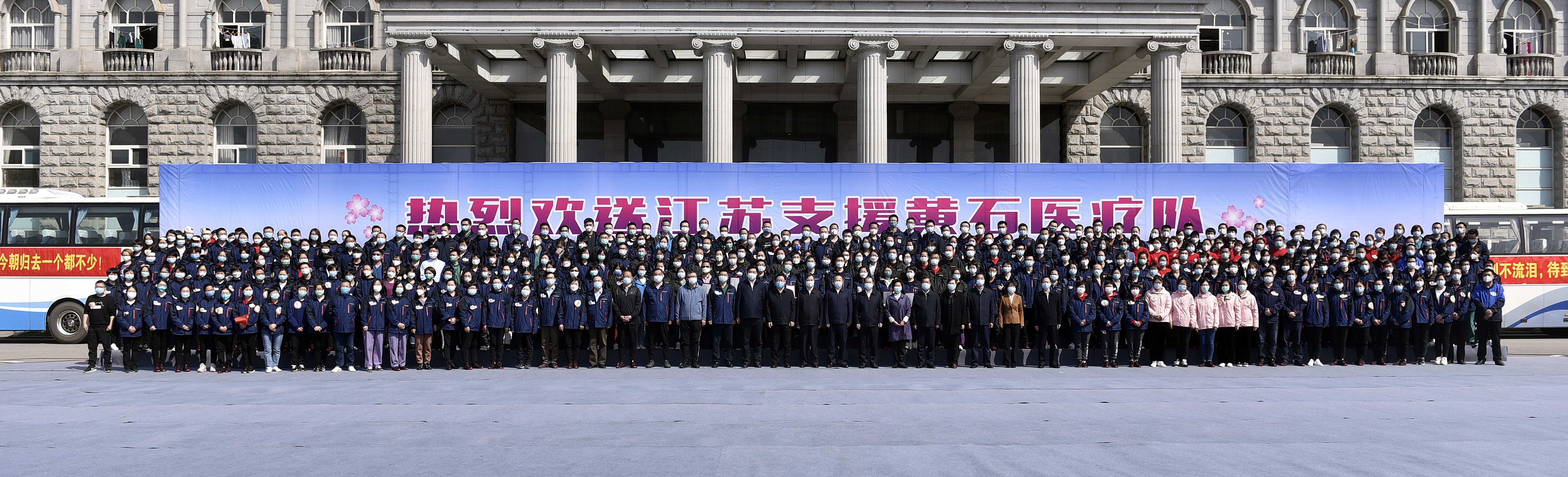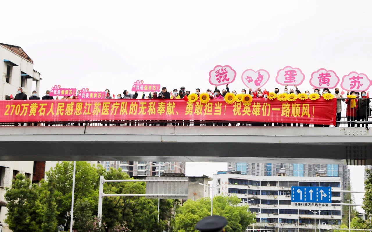 江苏援黄医疗队首批240位队员返回江苏,黄石人民夹道相送、深情致谢。122位留守黄石医疗队员继续全链条参与黄石疫情防控,将黄石新冠肺炎患者集中至黄石市中医医院救治。