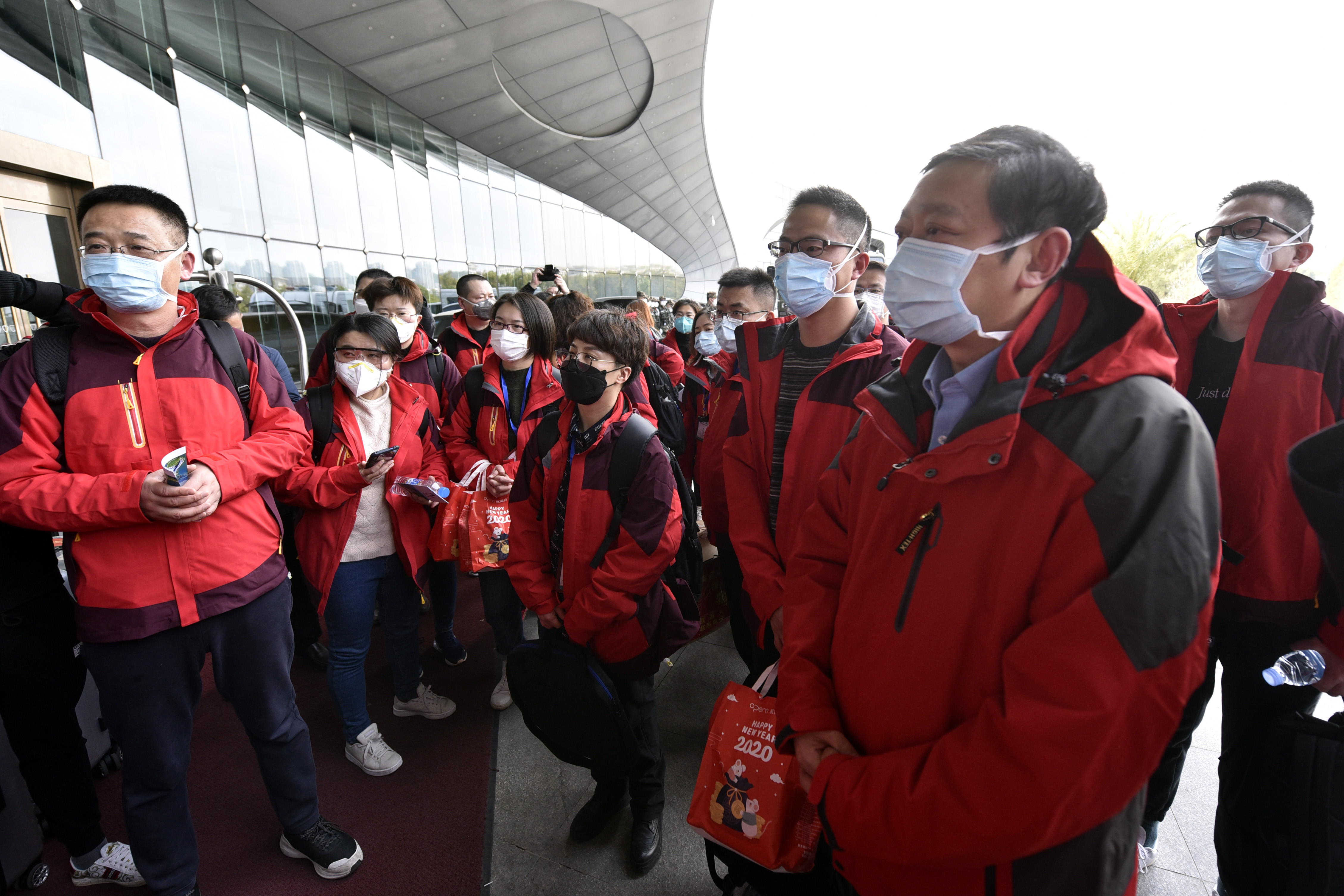 江苏省支援湖北疫情防控前方指挥部总指挥惠建林率江苏援黄医疗队122名队员,撤离黄石,返回江苏。