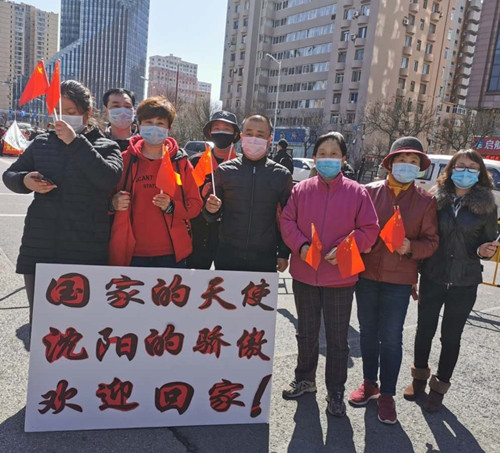 “沈阳的骄傲!欢迎回家!”“向逆行者致敬!欢迎你们平安凯旋!”下午一点钟,沈阳市皇姑区航院社区和新南社区两个居民代表团举着展示板在辽宁大厦门口“会师”,向白衣天使致敬。76岁的冯开琼奶奶说,白衣战士逆行而上的壮举让她一次次流泪,所以专程来到现场,欢迎英雄们回家。