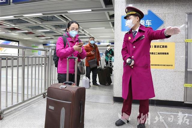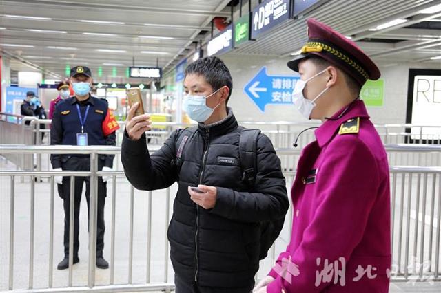 与武汉火车站无缝对接的地铁站情况也类似:站厅进站处张贴有40多个乘车码,同时增派多名工作人员,提醒乘客出示健康码、扫乘车码等。
