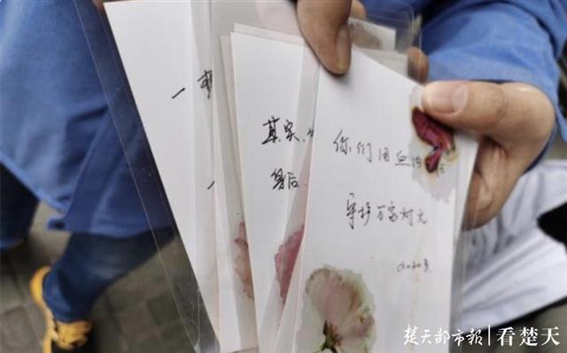 在酒店,前来送行的武汉志愿者们,列队为即将离开的山东医疗队员唱起了手语舞《谢谢你》,他们还为每一位医疗队员准备了樱花纪念卡。