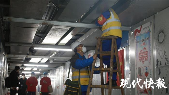 现代快报记者来到雷神山医院时,水电工许新焰正在对整个医院的电路进行检查,这是他每天的日常工作,每 4 个小时就要全面检查一次。他说,一旦哪里出现问题,要第一时间进入病区抢修,让医护人员和病人第一时间正常使用," 如果没有第一时间抢修,病人得不到最快的治疗,那就麻烦了。" 许新焰告诉记者,维保队员每天采取两班倒的制度,白班是早 8 点到晚 8 点,夜班是晚 8 点到早 8 点,确保医院 24 小时随时有维修人员能顶上去。