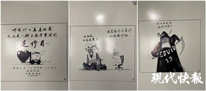 记者看到,漫画从写有新冠肺炎病毒代号的 " 疫魔 " 开始,逐渐画到火神山医院和雷神山医院拔地而起,再到医护人员战胜病魔迎来春天," 有时会有医护人员在这合影,就会很开心,很有成就感。"