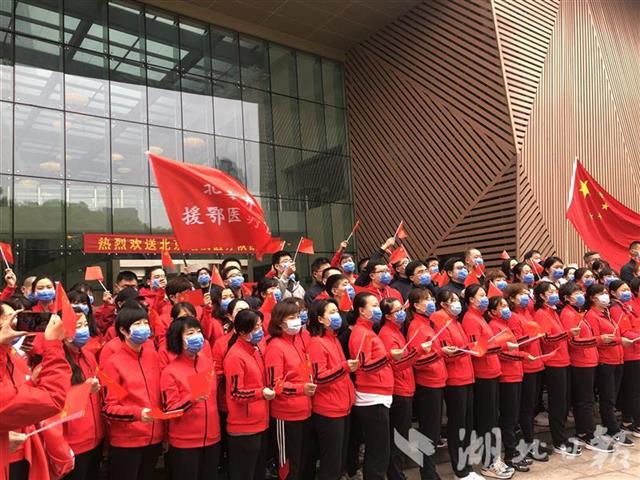 湖北日报讯(记者吴纯新、通讯员张健伟)3月31日上午10时许,一首《歌唱祖国》在武汉明德酒店门前唱响,北京援鄂医疗队151名白衣战士告别武汉。经65天连续奋战,医疗队顺利完成驰援任务,返程回家。