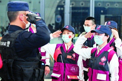 3月31日,7000多名完成救治任务的援鄂医疗队队员,从武汉撤离返回家乡,临别前民警向医疗队敬礼致谢