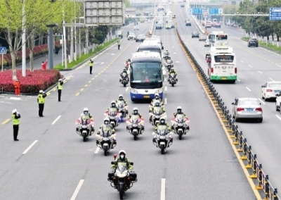 3月31日,内蒙古第四批援鄂医疗队踏上返乡路程,民警一路护送