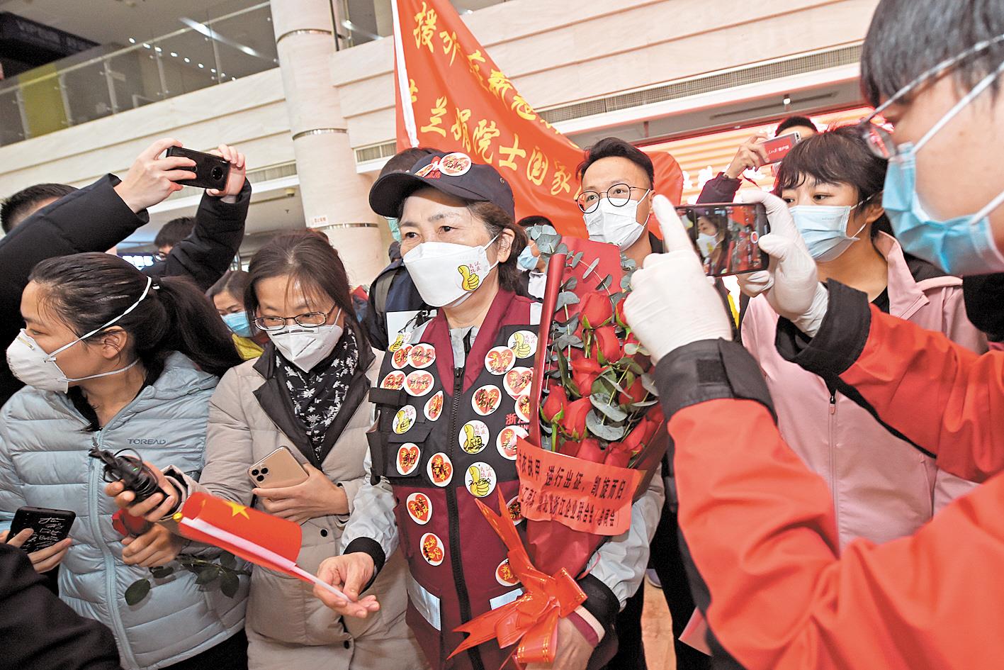 “感谢武汉,感谢武汉人民。”“回去了,我也会继续关注武汉的患者。”3月31日,武汉东湖高新区九通海源酒店,浙江省第五批返浙医疗队即将荣归故里,临上车前,国家卫健委高级别专家组成员、中国工程院院士李兰娟动情地说。她的衣服上,已经被医疗队队员、武汉市民和康复患者们贴满了红心和点赞标签。从酒店大厅到门前登车的短短十来米,李兰娟一步一停,步步牵挂。