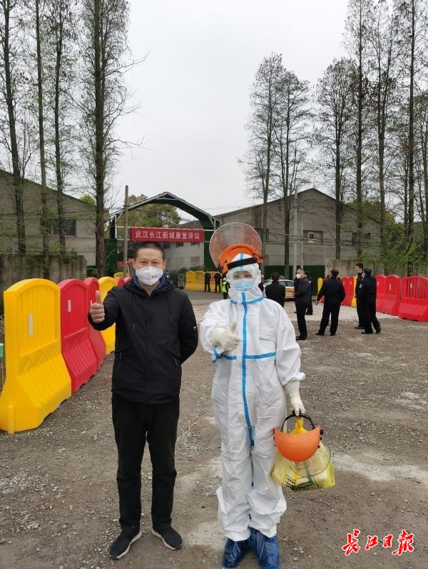 长江网4月1日讯 3月31日,在长江新城康复驿站出站口,穿着厚厚的防护服的张红刚准备进站,一眼认出戴着口罩站在门口的哥哥张宇星。新冠肺炎疫情发生以来,这是兄妹俩的第一次见面。