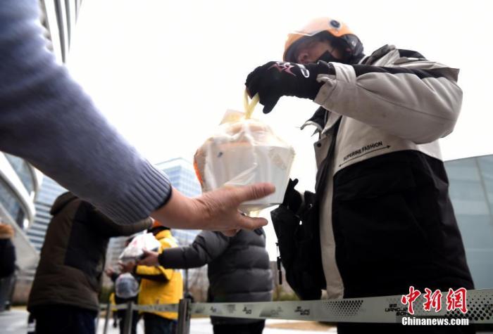 资料图:一名外卖送餐员为订餐者送上餐食。中新社记者 侯宇 摄