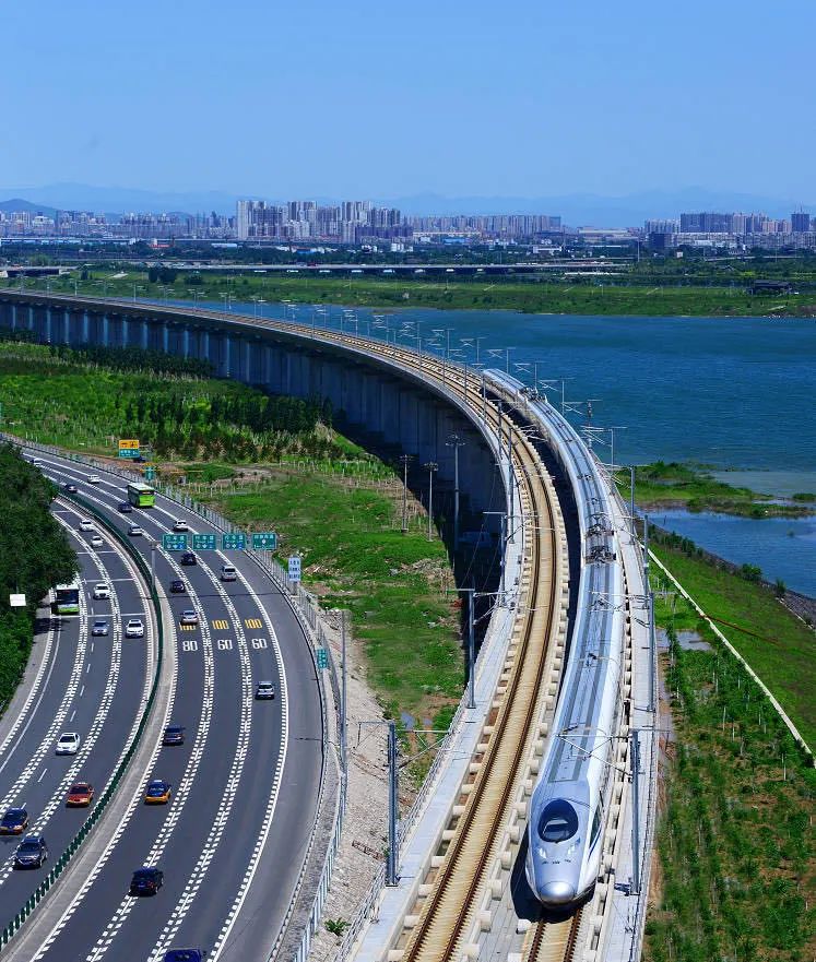碧水蓝天间的京广高铁 罗春晓 摄