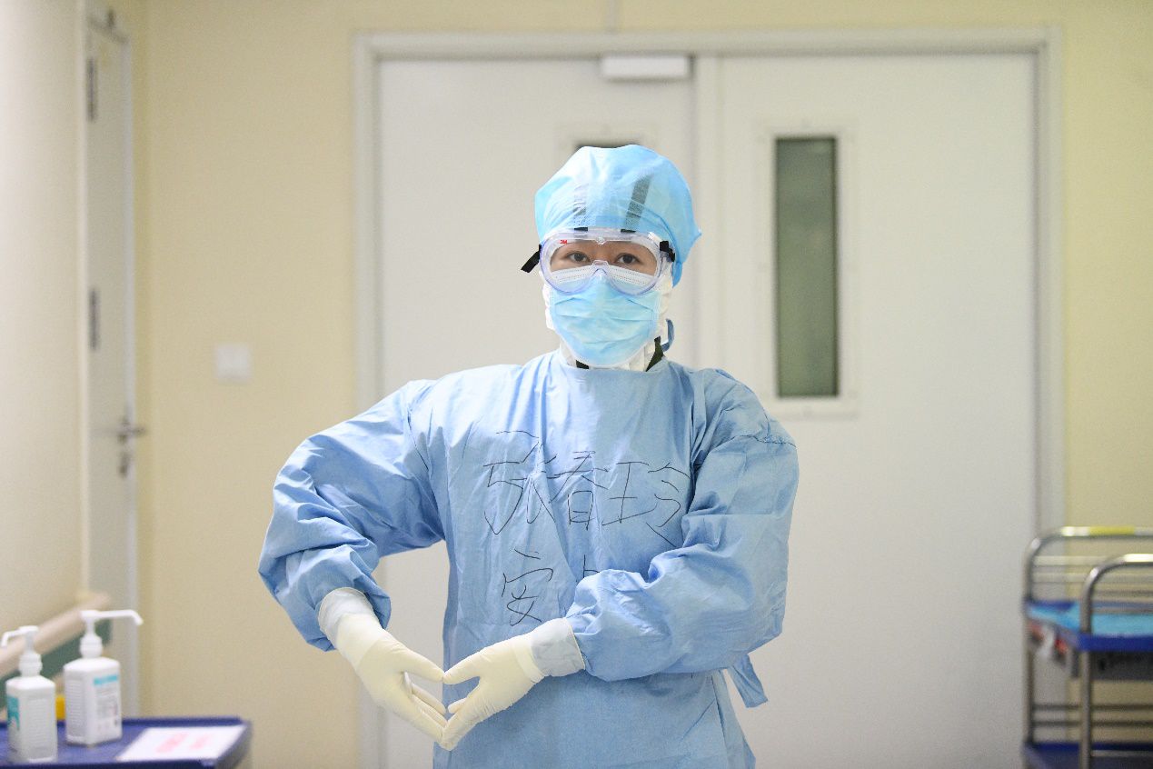 张春玲每日的工作除了查房、输液、抽血、发药、监测氧疗效果外,还担负着打水、送饭、帮病人翻身、协助如厕等生活护理。厚重的防护服使她不敢走快,护目镜上的雾气总会使视线模糊,三层手套更是使触感不准。“做操作时看不见摸不着,”张春玲说,“只能依靠积累的医学知识和工作经验来完成。”
