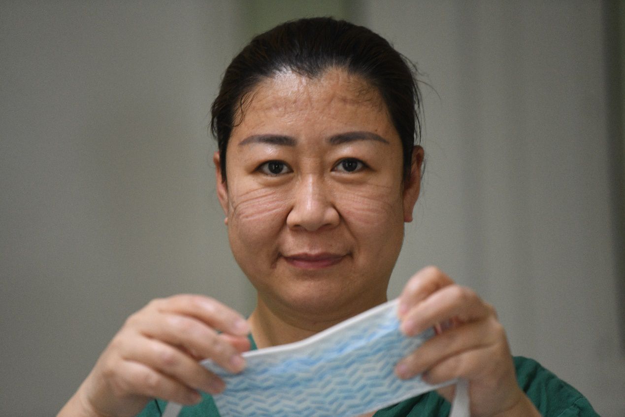 张春玲在演示时融入了很多平时工作中摸索出来的窍门。“大家都很认真地学习,但实际操作时还是会有很多疏忽。”她说,“我就手把手地教,直到每个人都能通过。”张春玲深知,医疗队作为一个整体,如果一个人被感染,其他人都很危险,此时此刻保护好自己就是保护战友。