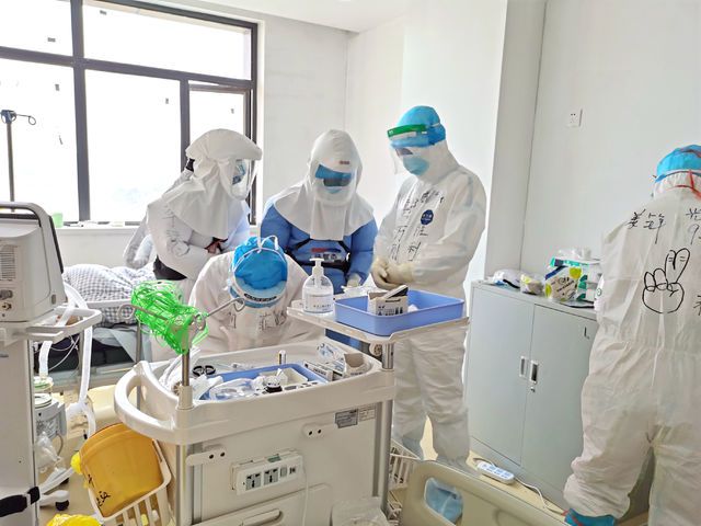 穿上厚重的防护服,戴上正压头罩,已是浑身湿透的李慧屏住呼吸,找准时机专注操作。终于,导管顺利置入患者气道!看着监护仪上变化的数据,大家长舒口气,“总算稳住了!”
