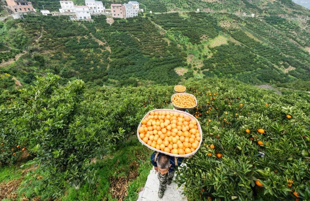 ▲2020年3月26日,湖北省秭归县郭家坝,果农在田间转运脐橙。图/视觉中国