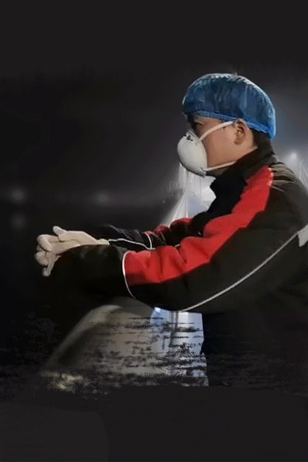 这张照片记录了武汉封城后“快递小哥”汪勇的忙碌。
