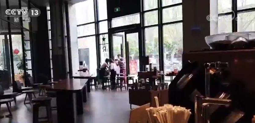 在写字楼里,不少公司陆续复工。做培训工作的董何旷今天是回到办公室的第一天,他按照往常习惯通过外卖点一杯咖啡提提神。