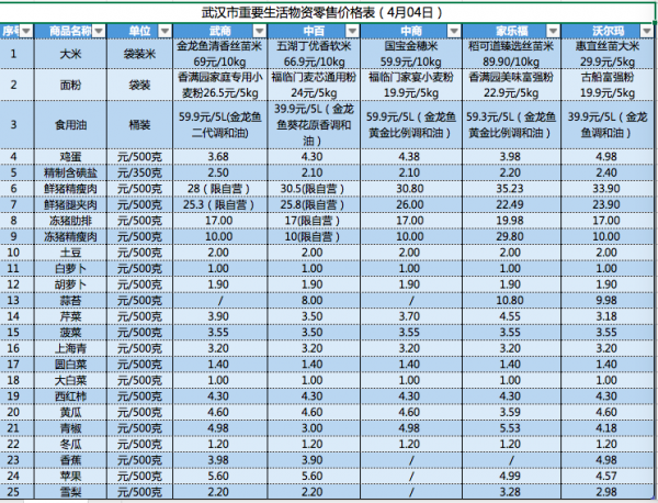 自2月22日起,武商、中百、中商、家乐福、沃尔玛等五大超市将25种重要生活物资销售价格定期公布,让市民足不出户明明白白消费。