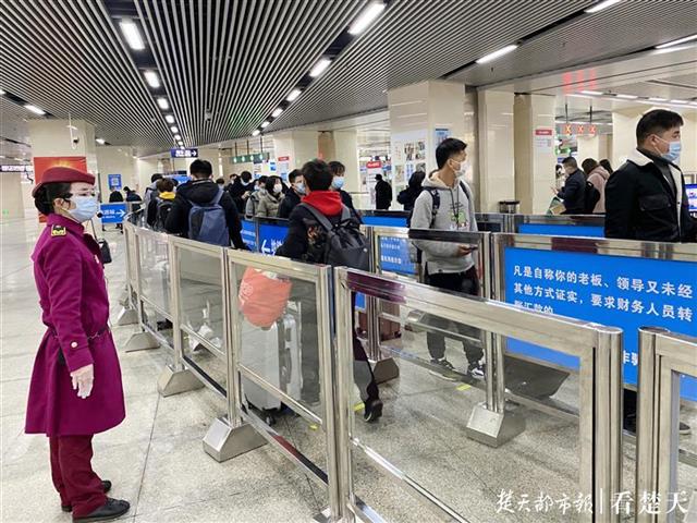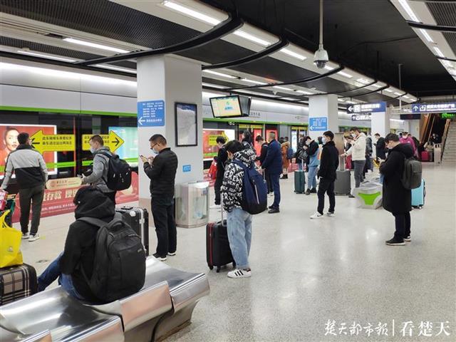 三大火车站地铁站硬举措保障大客流。针对外地返汉人员日渐增多,与三大火车站无缝对接的地铁站客流逐渐增长的情况,加大与国铁车站、综管办、公安部门的对接,建立联动工作机制,加大客流管控,保障返汉乘客有序通过地铁出行。以地铁汉口火车站为例,恢复运营以来,日均集散量约为0.91万人次,其中8成以上为外地返汉人员。受限于火车站与地铁连接通道的通行能力,当铁路列车集中到达、客流增大时,会出现短时的排队现象。针对此情况,铁路、地铁以及综管办、公安人员及时联动,引导一部分乘客至火车站站前广场,防止通道内人员聚集。分流至地面广场的乘客,由工作人员引导提前出示健康码或现场进行实名登记,核定健康状态无异常后,再通过体温筛查和安检程序进站乘车。