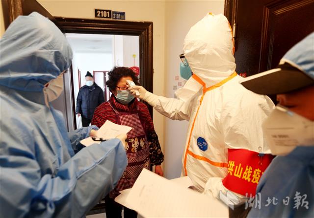 2月7日,武汉市洪山区下沉干部和医护人员入户测量体温、排查详细登记,确保不落一户、不漏一人。