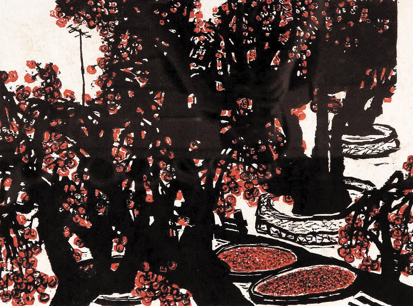 蓝玉田 《承包的日子别样红》 版画 55x42cm 1984年