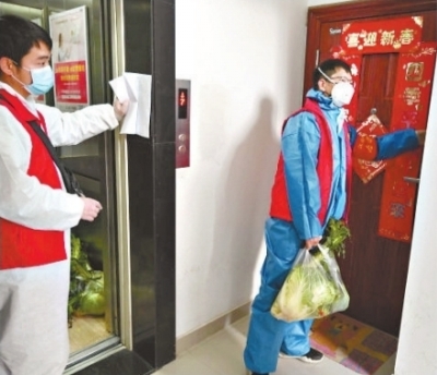 招募令发布后,7万多人争相报名,2万多名志愿者上岗。接受线上培训和做好相关防护后,他们立足社区,通过发一次信息、打一遍电话、上一次门的方式在岗位上服务,力所能及地满足居民买米买菜、上门送药等需求,把关爱送到小区的千家万户。