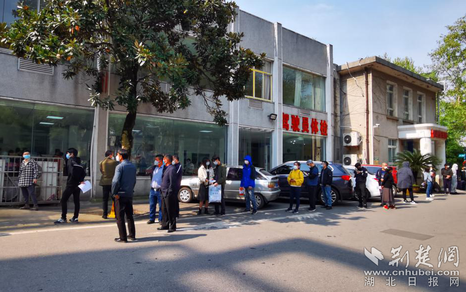 荆楚网客户端-荆楚网消息(通讯员李攀、赵林)近日,随着武汉解封重启。汉阳医院体检中心大厅外,排队体检的队伍长达几百米。导诊人员耐心地为排队人群答疑、维护排队秩序,并承诺医院不接待完最后一人不会下班。截至4月9日,该院已接待复工复产体检人员790多人。