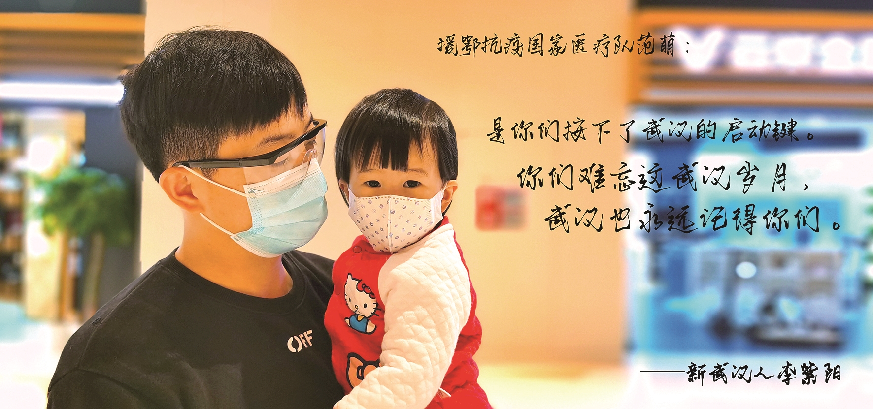 “遥寄武汉情”活动的发起人李紫阳怀抱女儿写下祝福