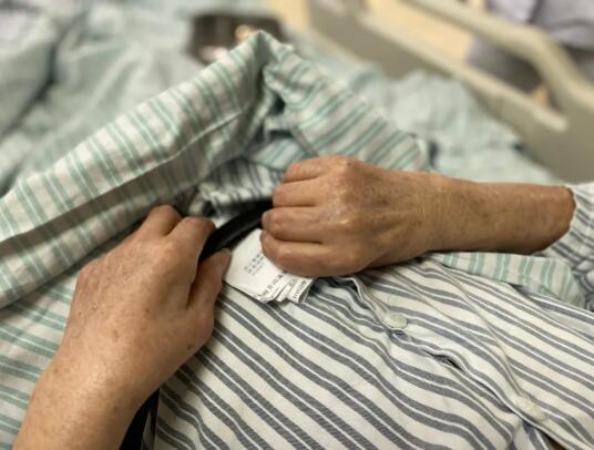 2017年,已经86周岁的孙念杰老人,被确诊为阿尔茨海默病后逐渐失语。现在因肺病插管无法发声,只能用气息和眼神变化来回应。
