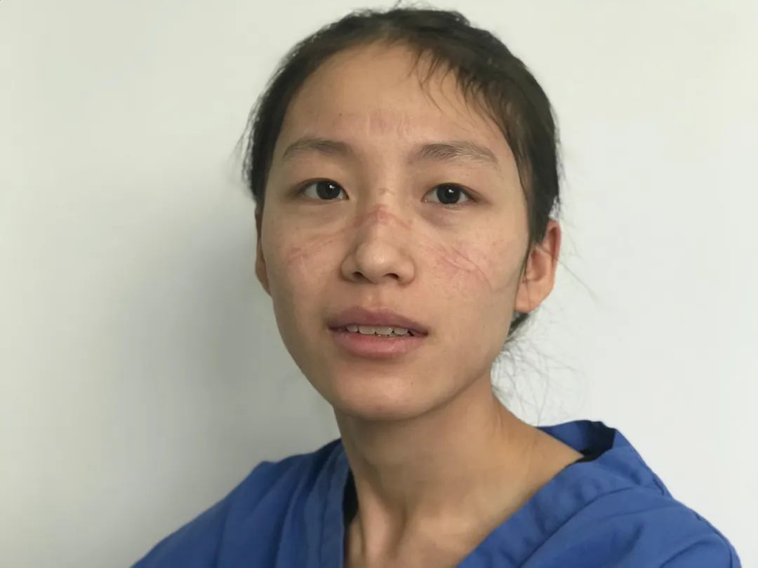 每天凌晨2点交换班,从病房到宿舍的小路黑暗寂静。陈颖害怕一个人走,她下意识地掏出手机,微弱的屏光映衬出一张勒出印痕的脸——口罩、护目镜戴久了,在脸上压出了一道红印子。