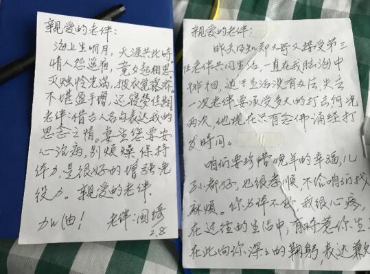 “亲爱的老伴:海上生明月,天涯共此时;情人怨遥夜,竟夕起相思……妻望您要安心治病,别烦躁。”元宵节当日,黄国琦在信中这样写道。