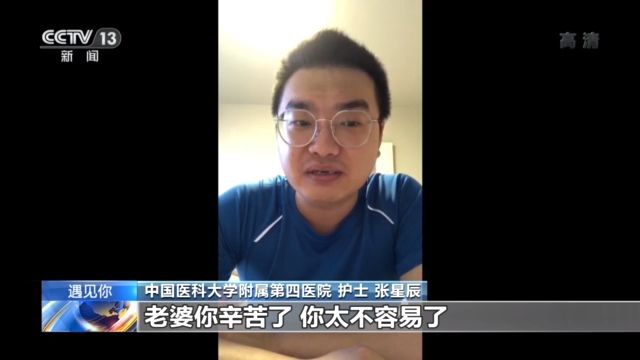 中国医科大学附属第四医院护士 张星辰:老婆你辛苦了,太不容易了。感谢你把我们的宝贝,带到这个世界上。非常遗憾就是我不能陪在你身边,等我回去之后,我会让你做全世界最幸福的女人,在这,我给你唱首歌吧,依然爱你……
