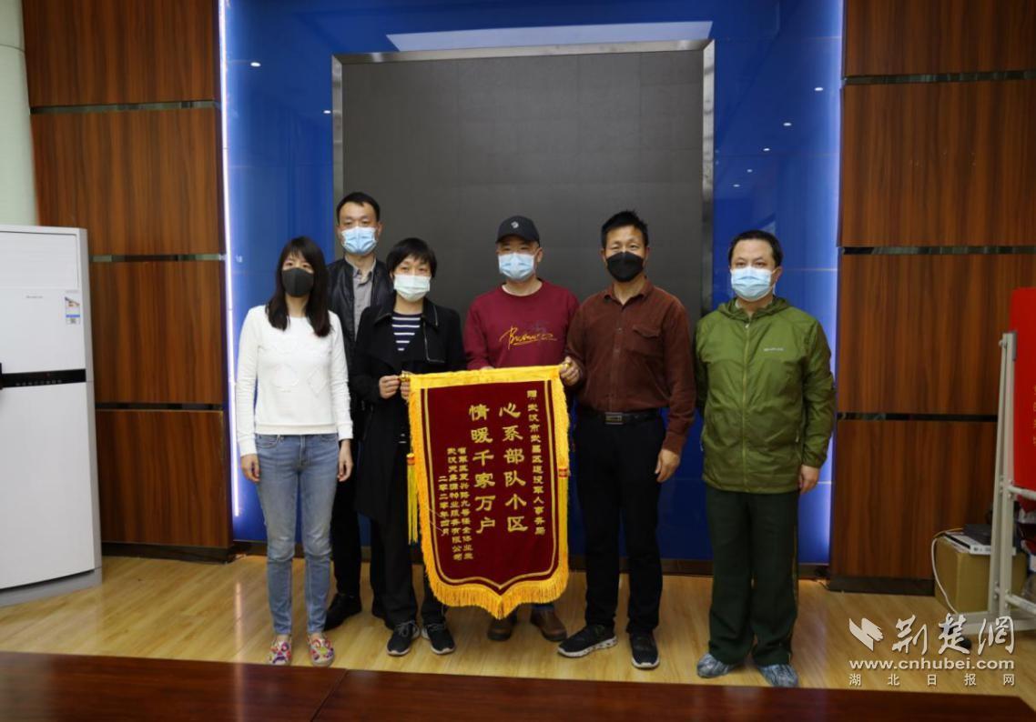 荆楚网客户端—荆楚网消息(通讯员包晓霁)“感谢武昌区退役军人事务局在疫情期间为我们小区送来的生活物资和防疫物资,解决了小区居民的燃眉之急,让奋战在抗疫一线的军人无后顾之忧。”4月9日下午,湖北省军区复兴路九号楼小区的现役军人、退役军人及军属等代表5人,将绣有“心系部队小区 情暖千家万户”的锦旗赠送给武昌区退役军人事务局。