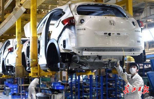 东风本田汽车有限公司总装生产线一片忙碌。记者周超 摄