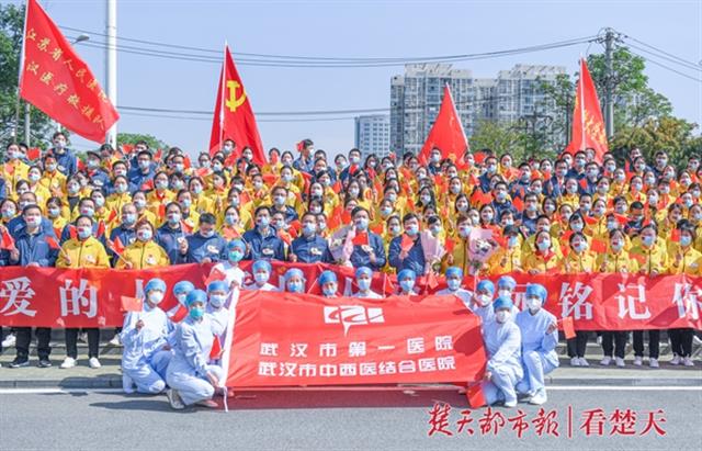 楚天都市报4月13日讯(记者刘丁维 黄士峰)武汉市第一人民医院感染五病区重症监护室护士长孙纯,带着14名护士手捧鲜花,在现场送别江苏的战友。“他们在我们最难的时候义无反顾来帮助我们,他们走,我们是一定要来的。”孙纯说。