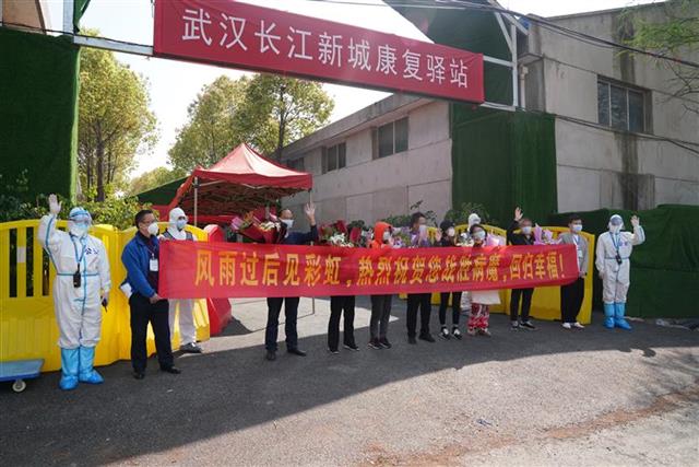 “经过14天隔离观察,我们终于可以回家了。感谢所有工作人员的精心照料!”4月13日上午,武汉市长江新城康复驿站门前,王先生(化姓)等7名康复者和医护人员、民警、志愿者合影留念,挥手道别。随着这7名康复者出站,武汉这座最大的康复驿站完成使命,正式闭站消杀。