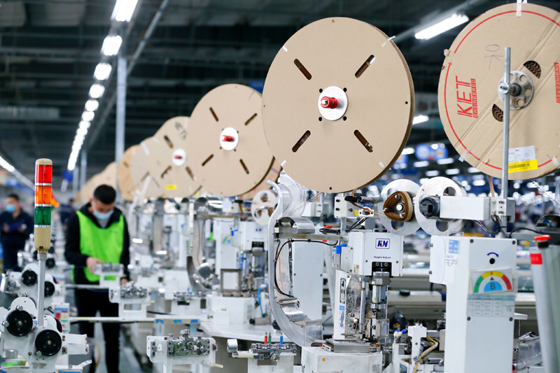 工人在山东青岛一家外资企业车间工作。(图源:新华社)