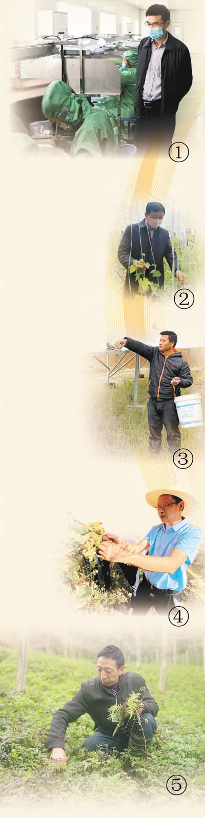图⑤:谭弟双在管护黄连。