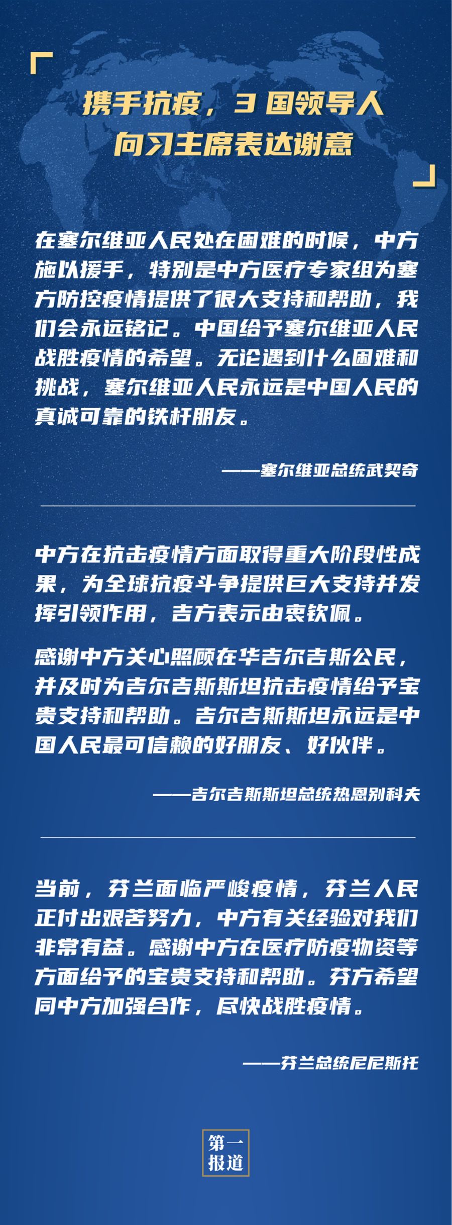 武契奇总统、热恩别科夫总统、尼尼斯托总统对中方抗疫贡献表示感谢和钦佩: