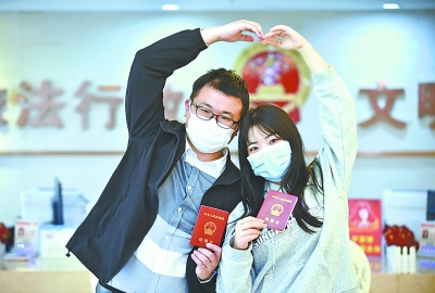 武汉晚报讯(记者乔驰 通讯员朱素芳)15日10时30分,在武汉市江汉区婚姻登记处门前,新人朱绍和黄丽萍经扫码、测温后进入窗口大厅,提交好相关证件材料和登记照,不到一刻钟,两人就办理完成了结婚登记手续。