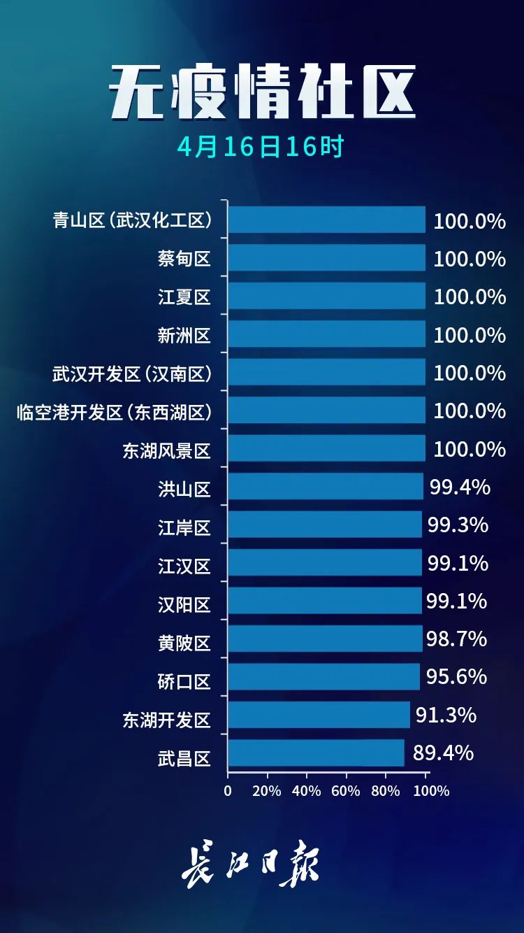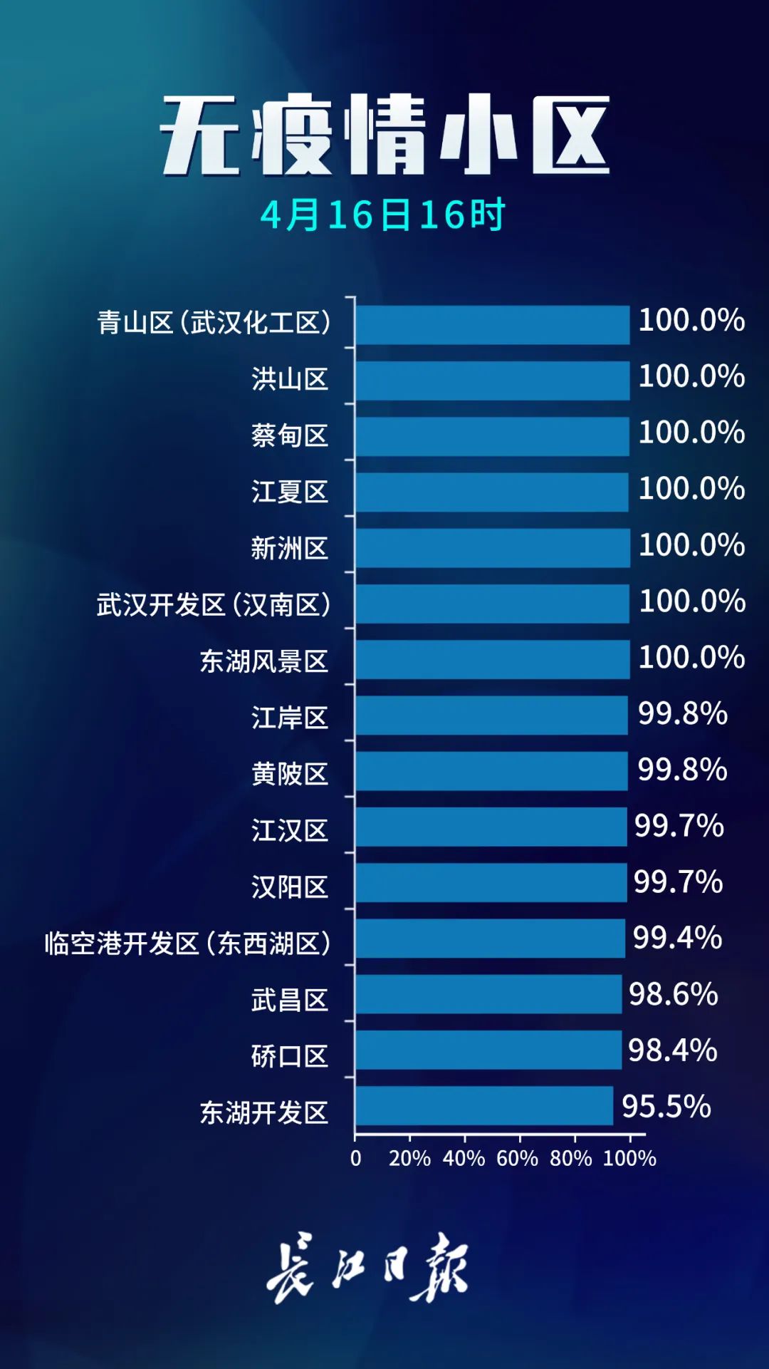 截至4月16日16时,全市无疫情小区累计7065个,占比99.5%;无疫情社区累计1373个,占比97.7%;无疫情村(大队)累计1943个,占比100%。
