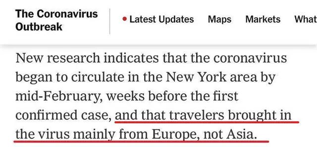 纽约新冠病毒来自哪里?美媒最新研究显示,主要来自欧洲而不是亚洲。
