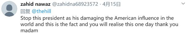网友评论:快阻止这个总统吧!他正在危害美国的国际形象。而这就是事实,总有一天你会意识到的!谢谢你,女士。