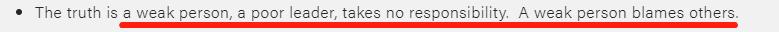 一个软弱的人,一个可怜的领导,不承担任何责任。只有弱者总是责怪别人。